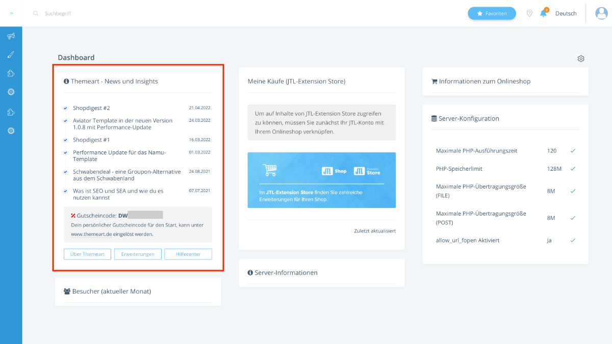 Mit diesem Widget für Dashboard bleibst du stets informiert über aktuelle Entwicklungen und spannende Aktionen. Das Plugin stellt ein neues Widget für das Dashboard des Shops.