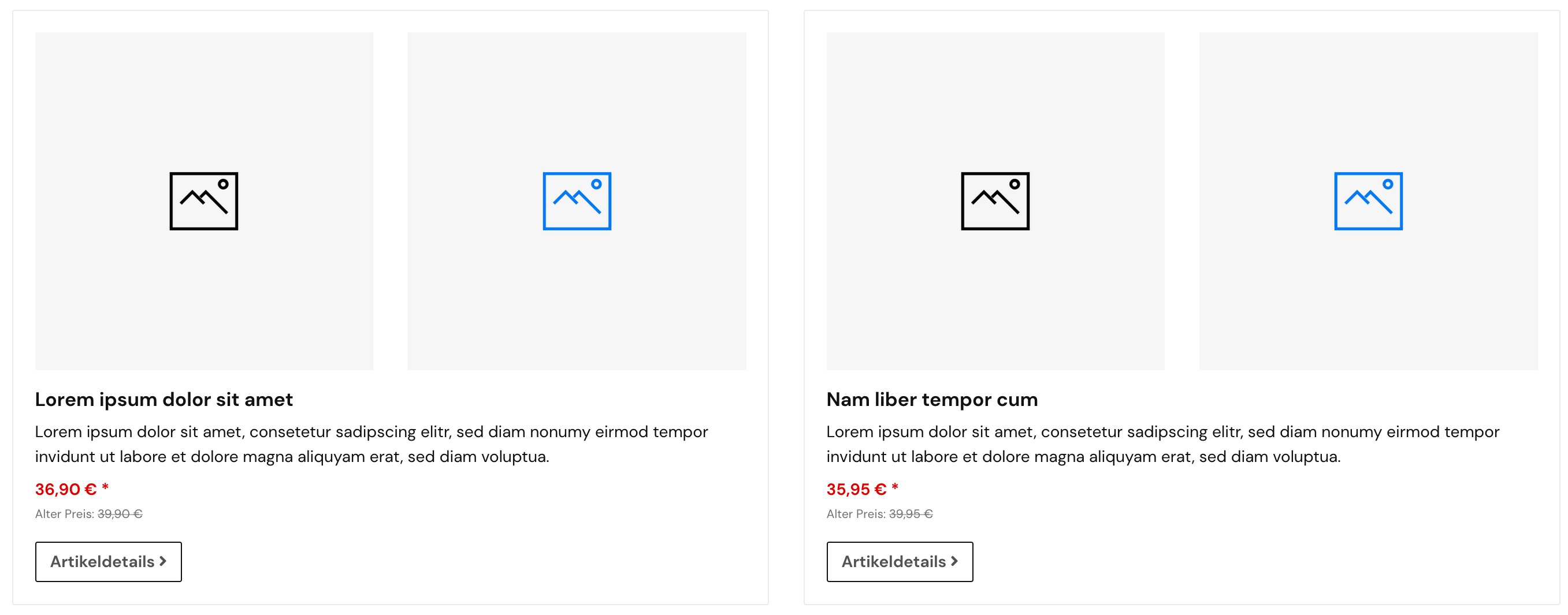 Zwei einzelne Artikel mit zwei Bilder nebeneinander